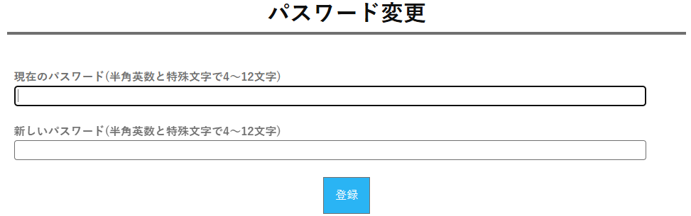すでにお知らせしたパスワードを入力、新しいパスワードを入力し、登録をクリックします。