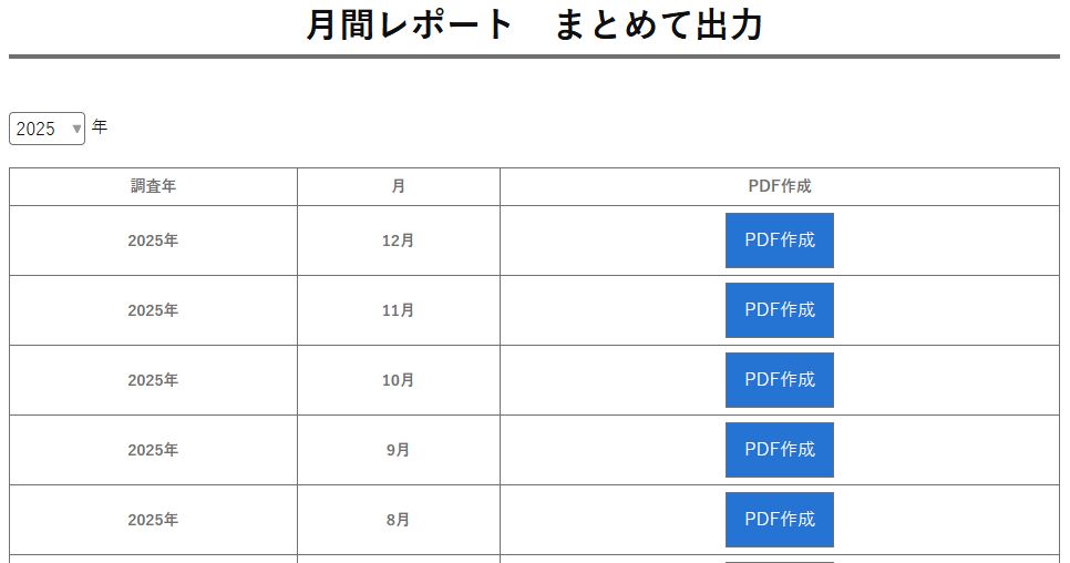 当月の調査データを報告書形式でPDFとして出力することができます。
