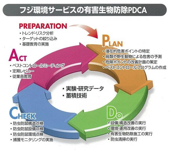 有害生物管理をPDCAサイクルで運用する際、このモニタリング調査はPDCAサイクルのチェック項目に該当します(下図)。