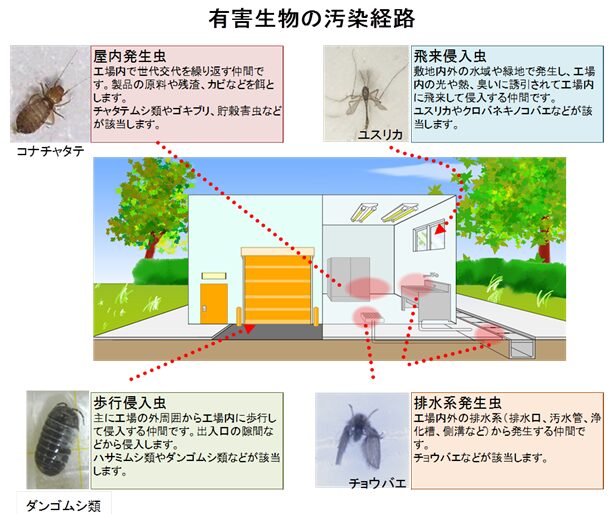 工場内で捕獲される有害生物の分類について(汚染経路)